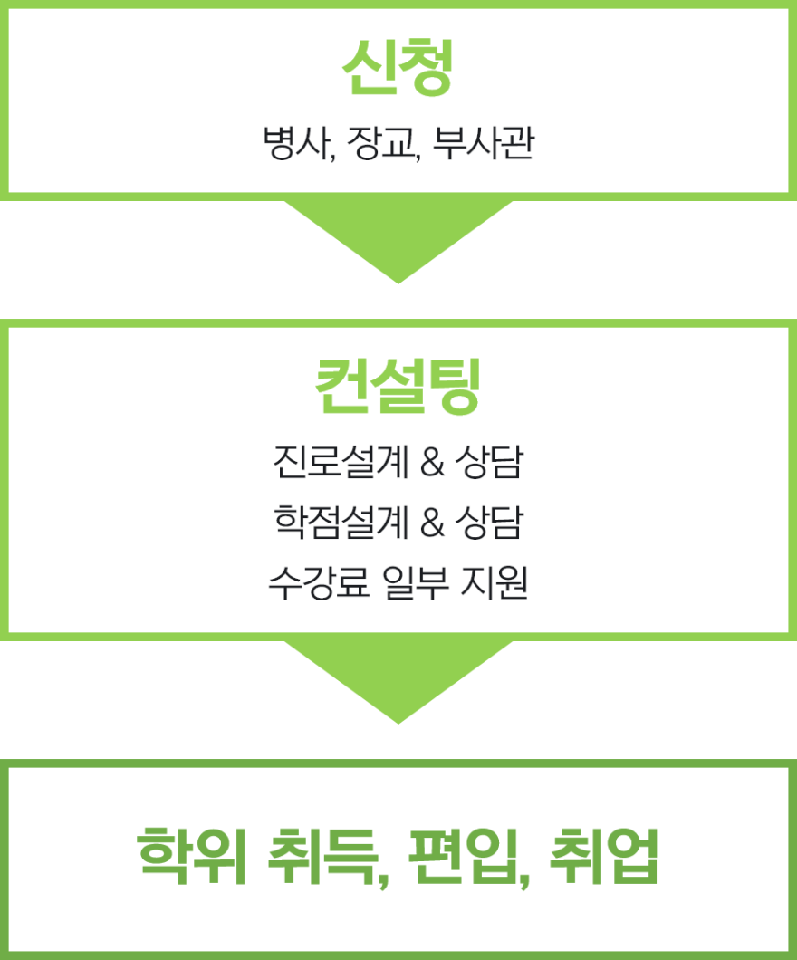 군 생활 기간 내 학위(전문학사, 학사, 석사) 취득 및 편입준비