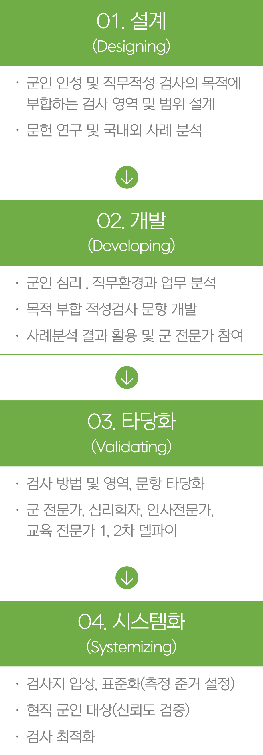 해당 직무 수행에 요구되는 기초 잠재 능력에 대한 객관적이고 타당한 정보 수집을 통해 군 특기 추천 병역설계가 가능함 |